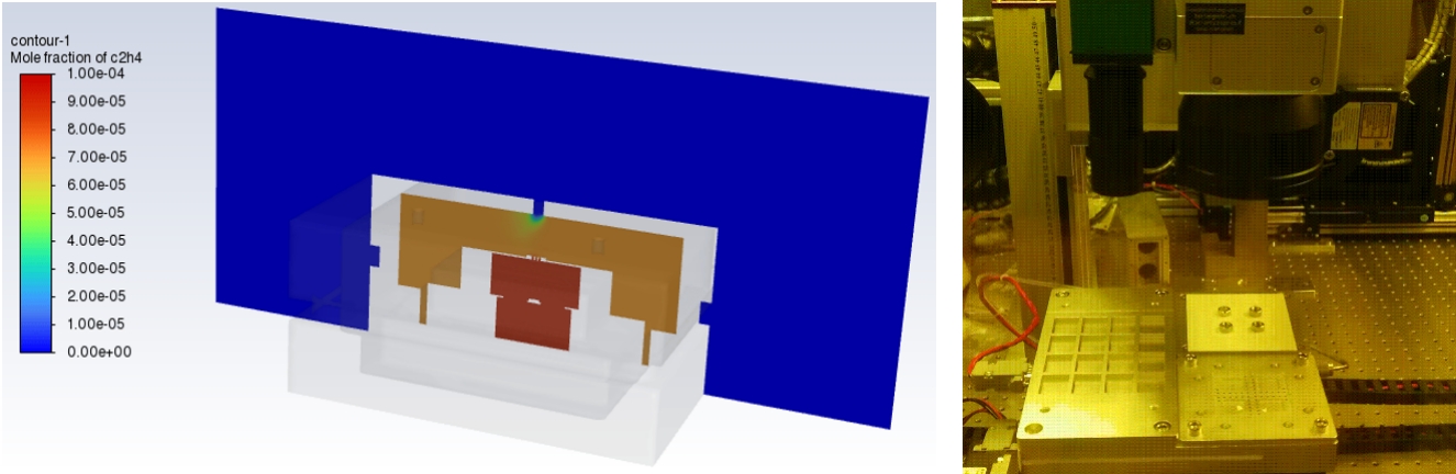 采用片上催化-脈沖溫振頻譜測(cè)量技術(shù),抗擾性強(qiáng);采用激光導(dǎo)向原位集成技術(shù),一致性、穩(wěn)定性高。
